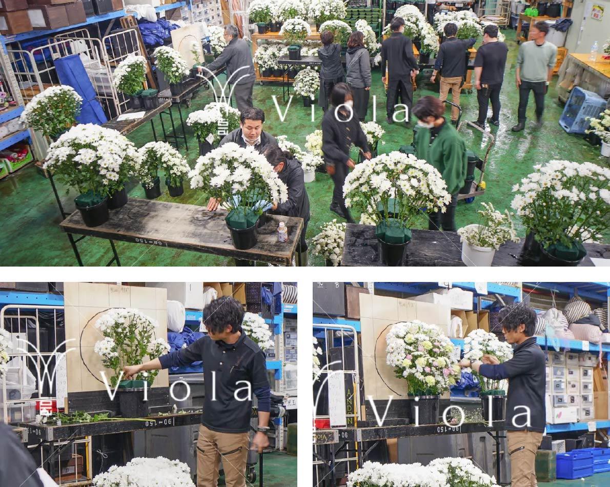 基礎祭壇(6万円・6尺程度想定)の作成手順菊ラインの講習(2段またぎ・グラデーション等のカタログ商品に必須技術)初級は8月、中級は12月に検定をする。