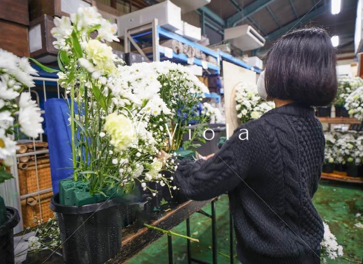 出棺束(大・小)の作成手順ラッピングの仕方残し花束の作成手順(白包装紙、保水・大きさ等含む)検定も行う