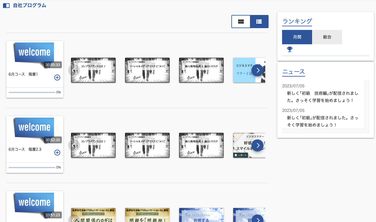 動画を活用するEラーニングで、都合良い時間にも学べる仕組みを用意しています。